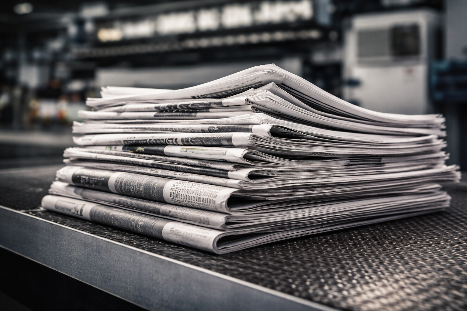 Paper made mostly from ground wood pulp and small amounts of chemical pulp; used primarily for printing newspapers.